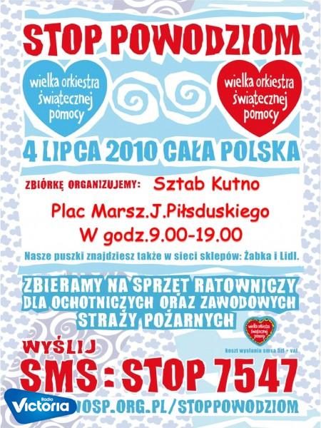 Akcja stop powodziom w Kutnie organizowana będzie 4 lipca na Placu Marszałka Piłsudskiego od 9 do 19.Puszki WOŚP znajdą się również w kutnowskich hipermarketach.