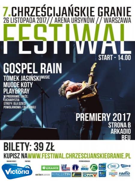 Festiwal Chrześcijańskie Granie – jeden z największych festiwali muzyki chrześcijańskiej w Polsce - po raz kolejny w Warszawie, po raz pierwszy w nowym miejscu. W tym roku impreza odbędzie się 26 listopada na Arenie Ursynów.