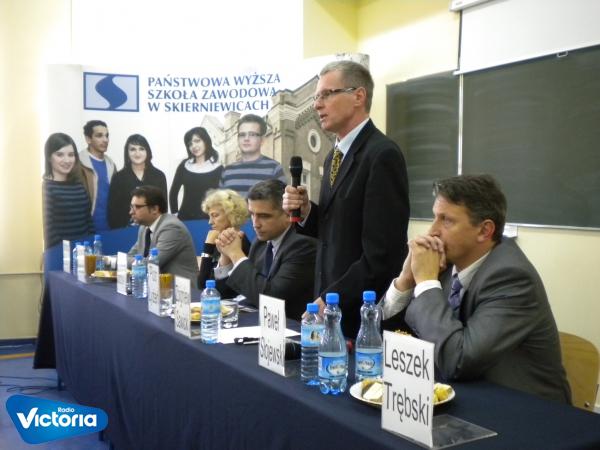 W skierniewickiej Państwowej Wyższej Szkole Zawodowej odbyła się dziś przedwyborcza debata z kandydatami na prezydenta miasta Skierniewice. W wykładowej sali skierniewickiej uczelni spotkało się sześciu z siedmiu kandydatów na prezydenta. Niestety udziału w debacie odmówił ubiegający się o reelekcje Leszek Trębski. Na spotkaniu padło kilka pytań dotyczących głównych problemów, wyzwań i perspektyw Skierniewic. Jak podkreślali studenci uczelnia to idealne, apolityczne miejsce na tego typu spotkania…