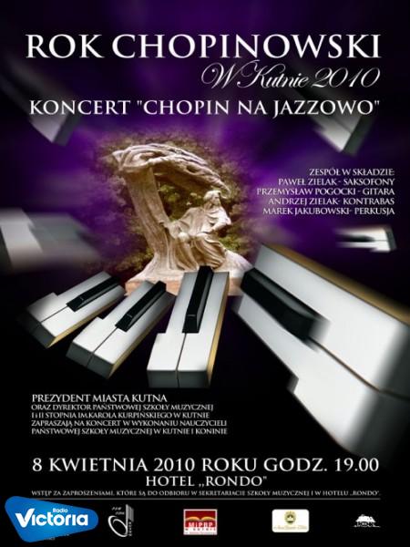 W czwartek, 8 kwietnia, odbędzie się wyjątkowy koncert. Nauczyciele z Państwowej Szkoły Muzycznej w Kutnie i Koninie wykonają utwory Fryderyka Chopina w jazzowych aranżacjach. Koncert odbędzie się w Hotelu Rondo, tam też można odbierać zaproszenia. Wejściówki są dostępne również w sekretariacie szkoły muzycznej. Początek koncertu o godzinie 19:00. Zagrają: Paweł Zielak - saksofony, Przemysław Pogocki - gitara, Andrzej Zielak - kontrabas i Marek Jakubowski - perkusja.