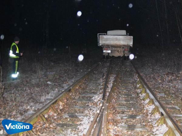 Policjanci ze Skierniewic zatrzymali dwóch mężczyzn, którzy ciężarówką jechali po torach kolejowych.