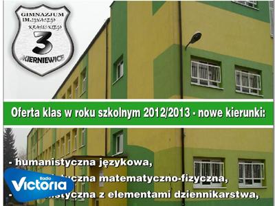 Gimnazja co raz mocniej konkurują o ucznia. W Skierniewicach dni otwarte szykuje Gimnazjum numer 3. Placówka będzie prezentowała nową szkolną ofertę, przygotowaną na następny szkolny rok. Konkurencja na edukacyjnym rynku robi się co raz bardziej ciekawa, szczególnie z perspektywy oferty z jakiej mogą wybierać potencjalni uczniowie. We wspomnianym gimnazjum uruchomiono między innymi nowe profile klas, w tym klasę turystyczno-geograficzną, dziennikarską, czy chociażby mundurową. Mówi Roman Czyżewski dyrektor placówki.