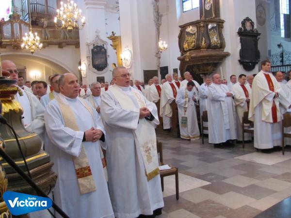 We wszystkich kościołach katedralnych biskup diecezjalny wraz z kapłanami z całej diecezji odprawia Mszę św. Krzyżma.