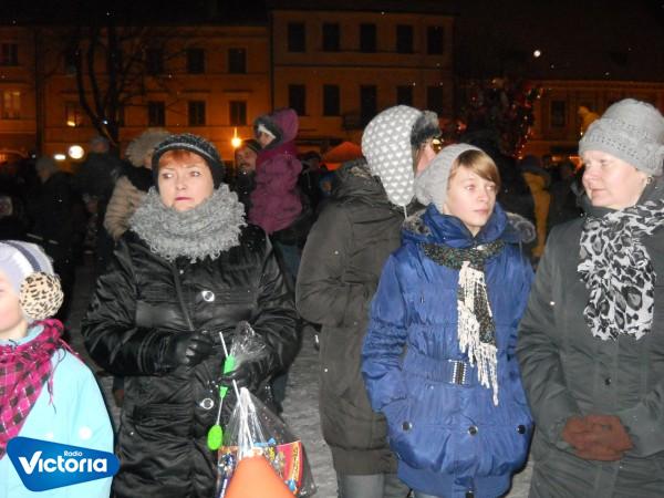 Dzieci przyszły na spotkanie z Mikołajem i co oczywiste otrzymać upominki. Atmosfera na rynku była wspaniała, kolędy, duża choinka i prószący śnieg napawał każde dziecko najszczerszą radością.