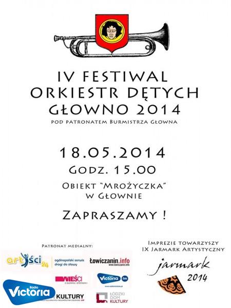 IV Festiwal Orkiestr Dętych odbędzie się w Głownie. Wzorem lat ubiegłych w konkursie wystąpi kilkanaście orkiestr dętych głównie z terenu Polski centralnej, Festiwal w tym roku połączony będzie z jarmarkiem artystycznym i odbędzie się na terenach rekreacyjnych przy zalewie Mrożyczka.