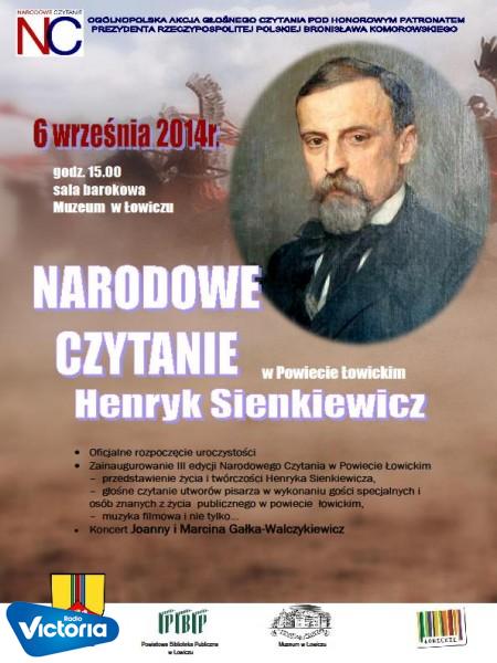 W sobote w muzeum w Łowiczu odbędzie się Narodowe Czytanie, pod patronatem Prezydenta Bronisława Komorowskiego. W tym roku w wielu miejscach odbędą się podobne akcje, np. w bibliotakach, szkołach a nawet w zakładach karnych. W Łowiczu podobnie jak rok temu przeczytają osoby życia publicznego. Będą to teksty Henryka Sienkiewicza.