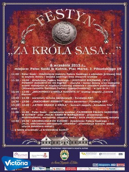 Muzeum Regionalne w Kutnie zaprasza 6 września na Festyn „Za króla Sasa”, który odbędzie się w Pałacu Saskim i na jego dziedzińcu, jako impreza towarzysząca 41. Święta Róży. Głównym punktem programu będzie odsłonięcie makiety Pałacu Saskiego z udziałem Królowej Róż i Prezydenta Miasta Kutno w asyście dworu i wojska saskiego.