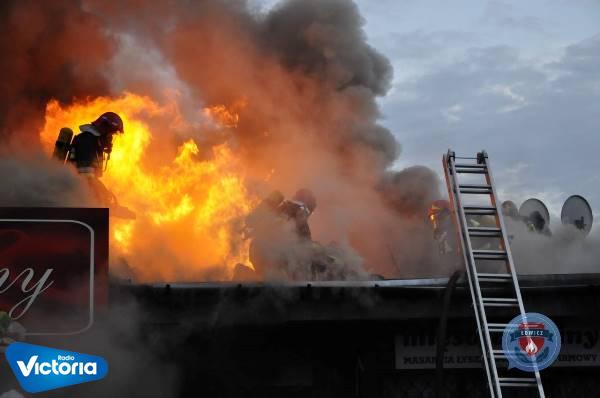 Wczoraj po godzinie 20:00 Straż Pożarna w Łowiczu otrzymała zgłoszenie o pożarze pawilonów handlowych na targowicy miejskiej przy ulicy Starzyńskiego w Łowiczu. Pożar był nieustępliwy i zajął niemal całkowicie poddasze baraków. Na miejscu akcji panowało silne i toksyczne zadymienie, dlatego z Łodzi zadysponowano specjalistyczny pojazd z dodatkowymi aparatami ochrony dróg oddechowych dla ratowników.