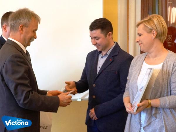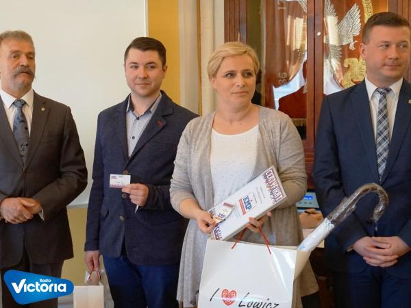 Burmistrz Łowicza Krzysztof Kaliński i przewodniczący Rady Miejskiej Michał Trzoska, wręczyli symbolicznie pierwszy certyfikat i Kartę Młodego Przedsiębiorcy osobom, zgłoszonym do programu wsparcia dla młodych przedsiębiorców.