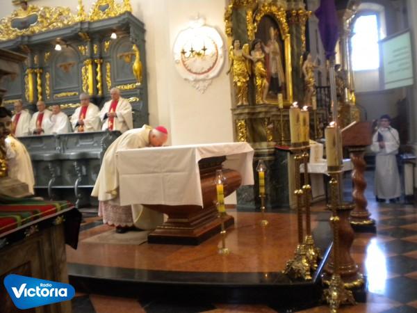 W Bazylice katedralnej odbyła się dziś Msza Krzyżma świętego. Liturgia ta odbywa się zwykle w katedrze, gdzie przed południem w Wielki Czwartek gromadzą się kapłani wraz ze swoim ordynariuszem. Wyrażają przez to wzajemną jedność. Podczas tej Eucharystii biskup święci oleje święte, które potem służą np. do chrztu, bierzmowania, a także do namaszczenia chorych. Księża odnawiają swoje przyrzeczenia kapłańskie. To jedyna msza św. w roku o takim charakterze. Odbywa się w Wielki Czwartek, gdyż to wtedy została przez Jezusa Chrystusa ustanowiona Eucharystia. Materiał z mszy św. W Łowiczu przygotował Bartek Sobczyk.