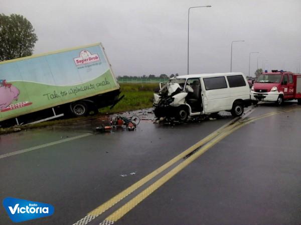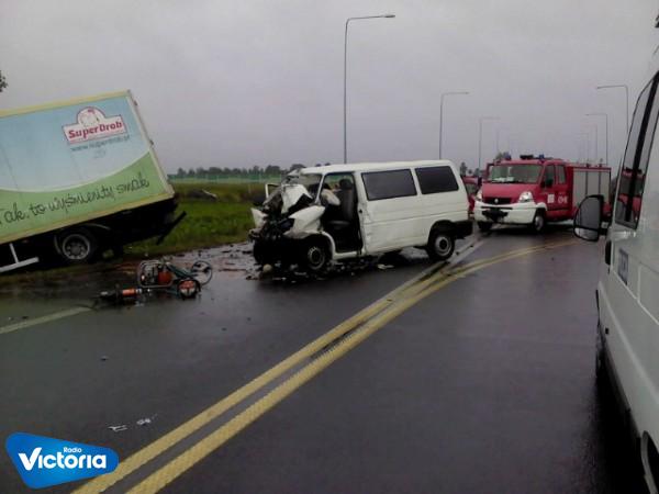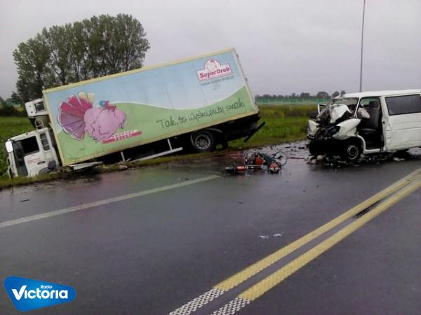 Strona główna » Archiwum aktualności » Czołowe zderzenie busa z samochodem ciężarowym w Kaszewach na drodze K 92 .